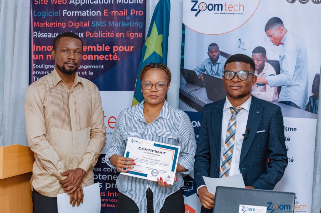 Kinshasa, RDC – L’engagement de Zoom Tech, entreprise de services numériques de premier plan basée à Kinshasa, à transformer le paysage de la communication digitale en République Démocratique du Congo s’est une nouvelle fois manifesté avec éclat. C’est avec une immense fierté que Zoom Tech Académie, sa branche dédiée à la formation et à l’usage des outils numériques, a organisé la cérémonie de remise des brevets de sa dernière session de formation sur la « Communication Digitale associée à l’Intelligence Artificielle ».